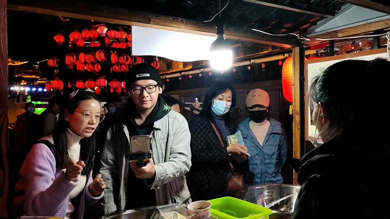 学员们在课堂上认真学习,实操上积极练习,当天晚上学员们就在非凡(大理)文化发展有限公司的组织下,到弥渡县青螺古坊美食街拍摄短视频,并进行直播。热气腾腾的明朝宫廷菜弥渡卷蹄,地理标志商标产品酸腌菜,已被列入非物质文化遗产保护名录的密祉豆腐,尝过一口便会带来无限牵挂的红曲米……五香十色的弥渡美食引得手机屏幕前的网友垂涎三尺,自然的馈赠,时间的味道,弥渡独有的烟火气,每看一眼都心动。