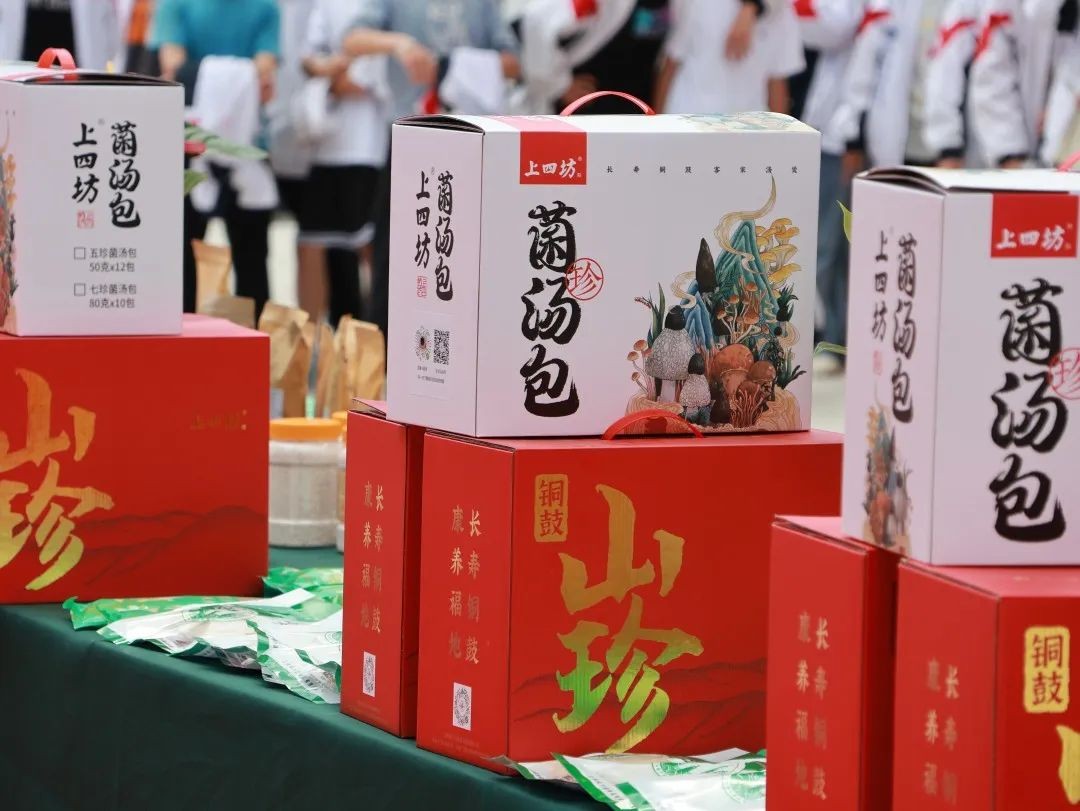 比赛现场,参赛选手们通过自己的抖音账号进行直播销售,向网友们介绍笋干、酸枣糕、糯米笋尖、江西米粉条、葛根粉、菌汤包等铜鼓特色产品。