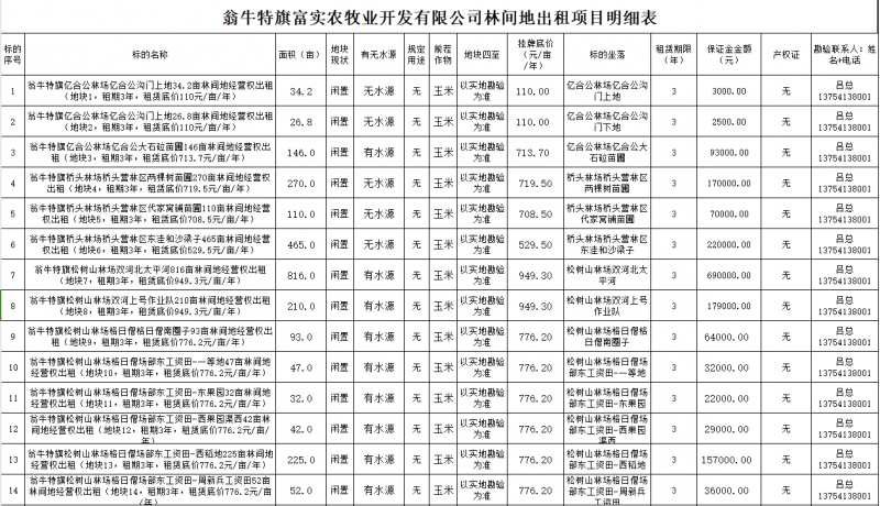 (7)项目名称:翁牛特旗约3387亩林间地经营权出租,租期3年