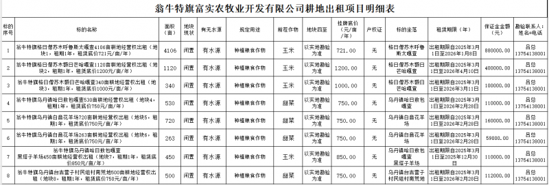 (8)项目名称:翁牛特旗约8029亩耕地经营权出租