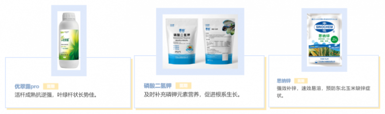 方案效果:该方案可解决灌浆期叶片早衰、影响光合产物积累导致的籽粒不饱满、千粒重低问题,延长灌浆时间,提高籽粒重量,助力东北农户丰收高产。