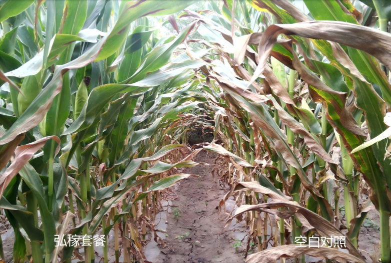在玉米大喇叭口前期,推荐每公顷使用:中化弘稼750mL+安道麦安伙伴200mL+优翠露1L+颂甜1L,或可在8-10叶喷施第一遍,灌浆初期喷施第二遍。